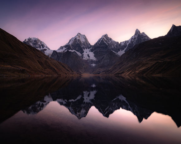 At Curuacocha, you'll find yourself encircled by towering peaks, including the magnificent Jirishanca, which dominates the skyline with its majestic snow-covered summits. The camp is set by the shores of a tranquil lake, the shimmering turquoise waters mirroring the surrounding mountains and skies, the perfect location to capture sunset, astrophotography and sunrise.